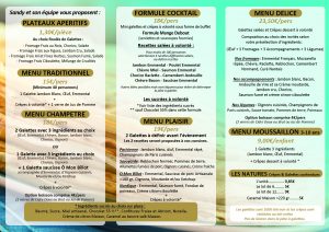 7 menus sont proposés sur notre carte, ceux-ci sont adaptables en fonction de vos attentes. Nous proposons également des plateaux apéritifs tournés autour du Sarazin.
